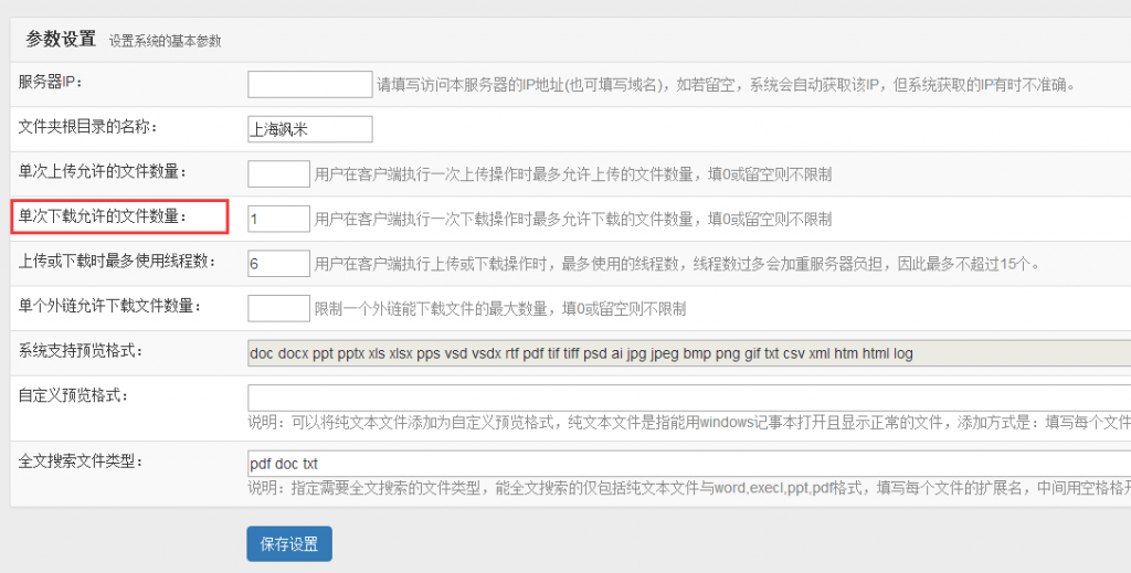 那么针对这样的问题,其实优米云盘在功能设计的时候早就有考虑这种情况,在后台参数控制中,管理员可以给所有人设置一个选项:单次下载允许的文件数量,顾名思义就是用户在客户端执行一次下载操作时最多允许下载的文件数量,填0或留空则不限制。如果担心用户批量下载的话,可以将该参数设置为1!