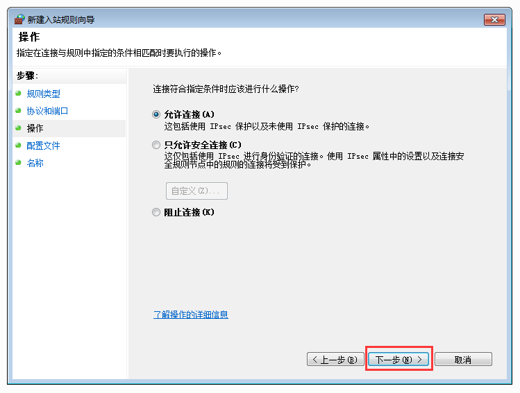 自定义一个名称,例如:“优米云盘188”。点击完成(入站规则189端口再按照上述步骤设置一次即可) 出站规则188和189端口,按照上述步骤,在高级设置中选择出站规则再设置一次即可;